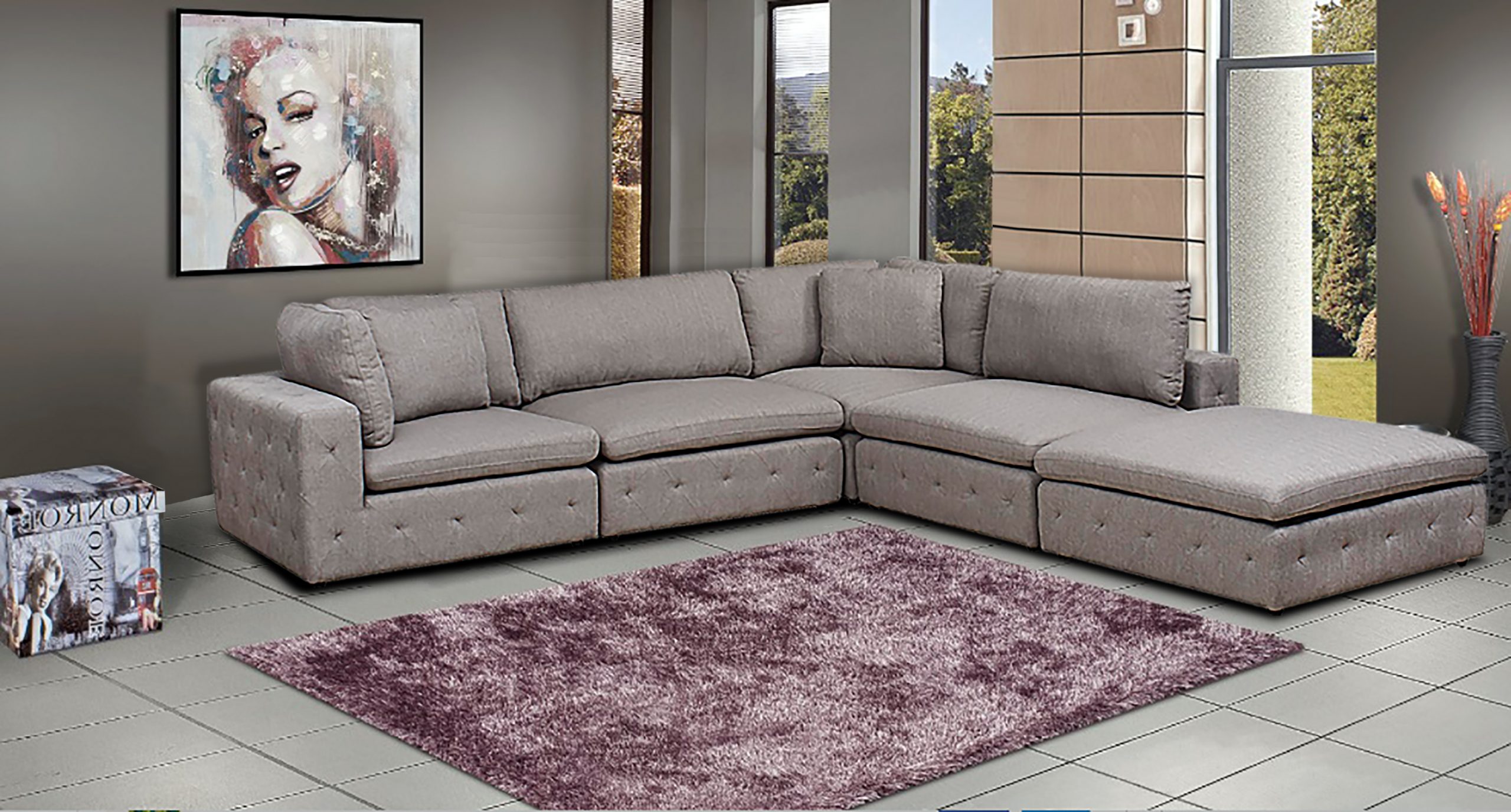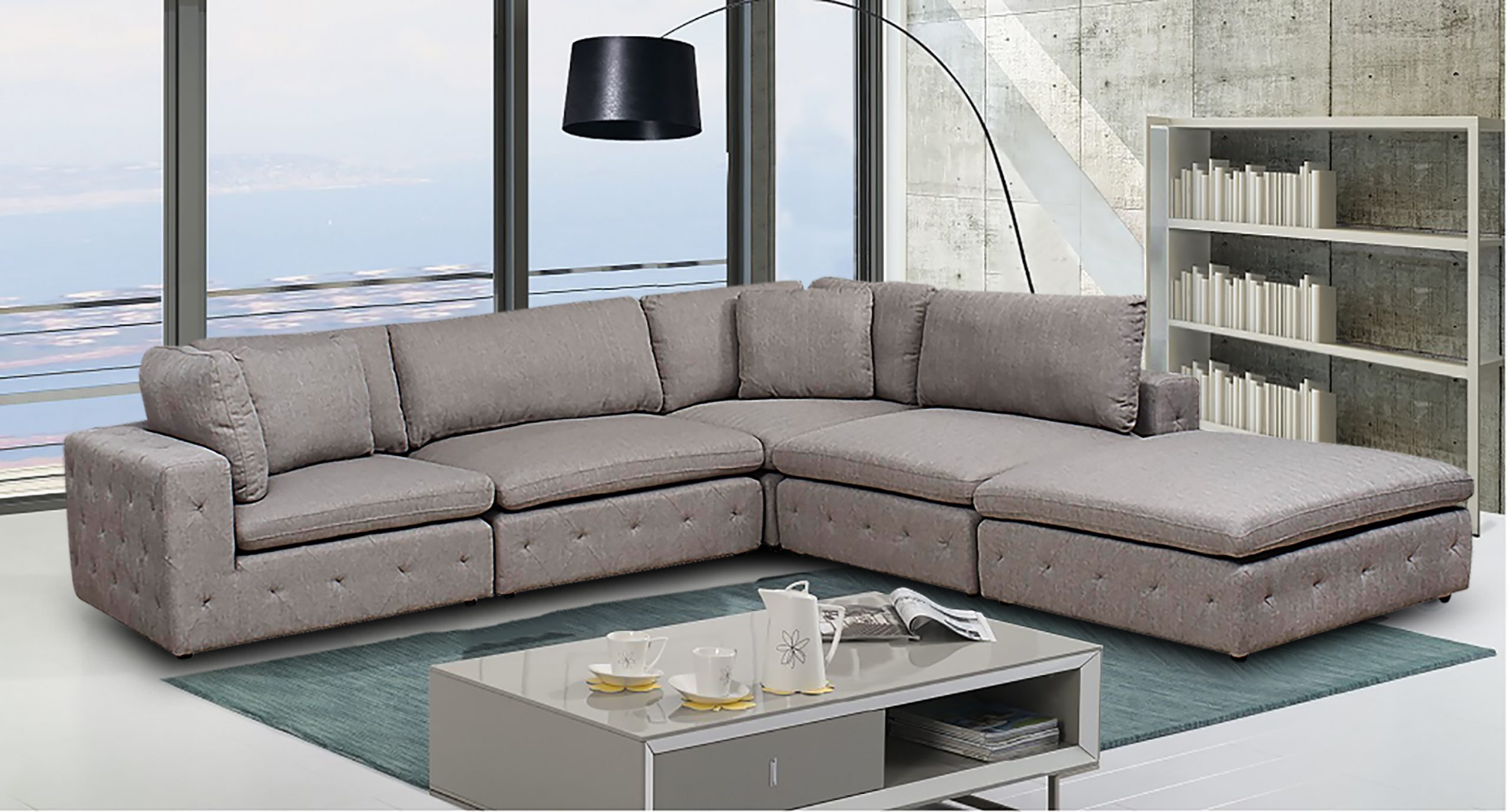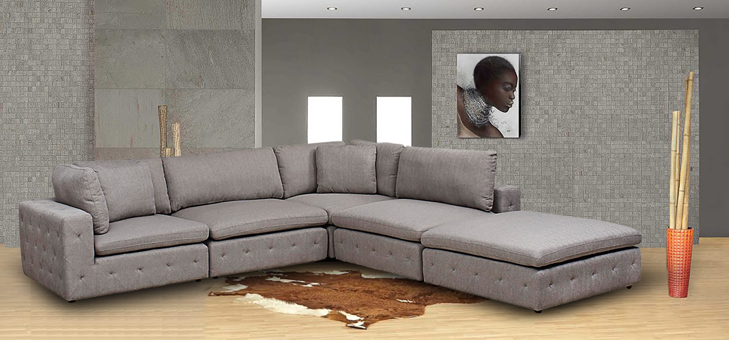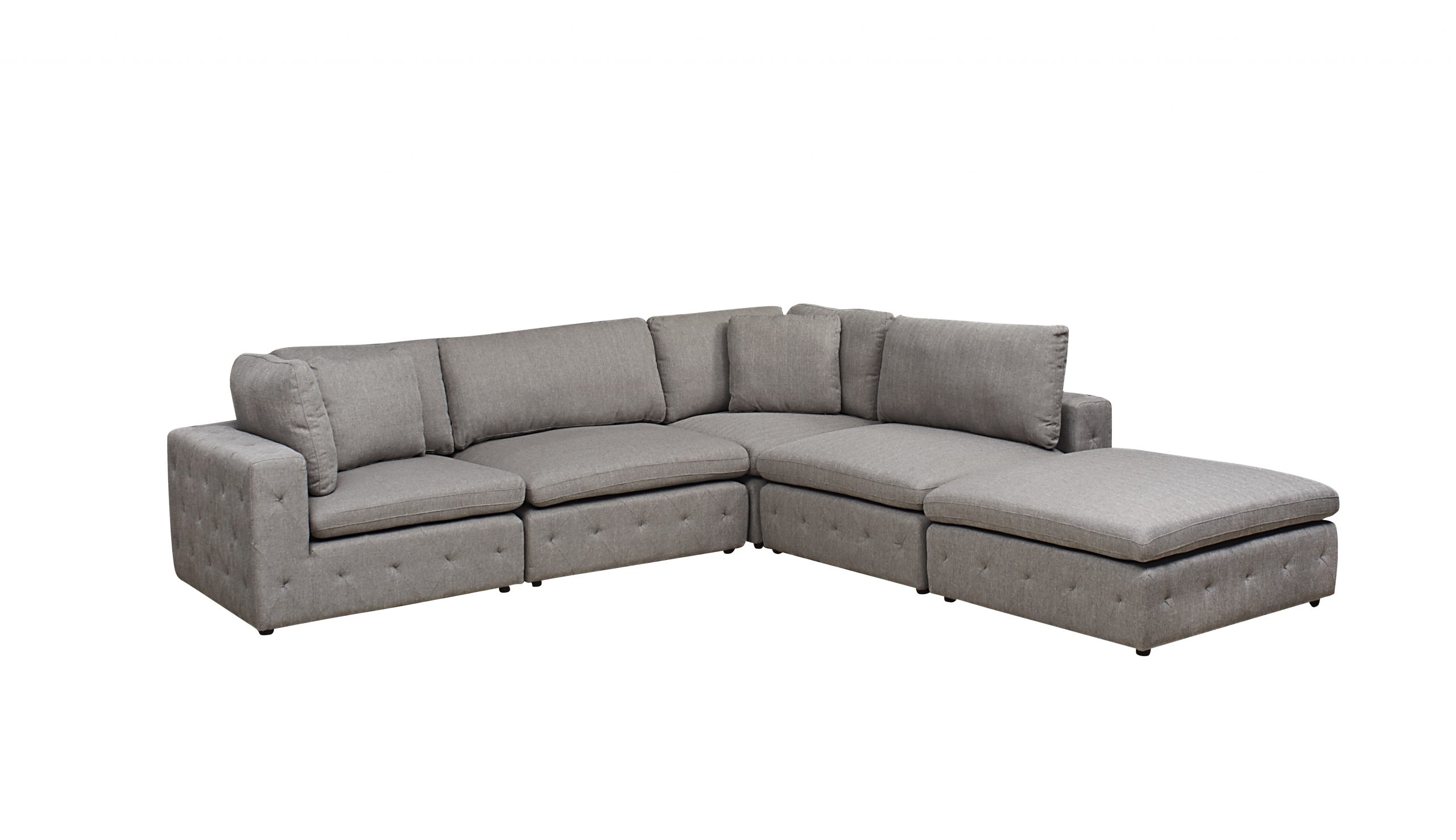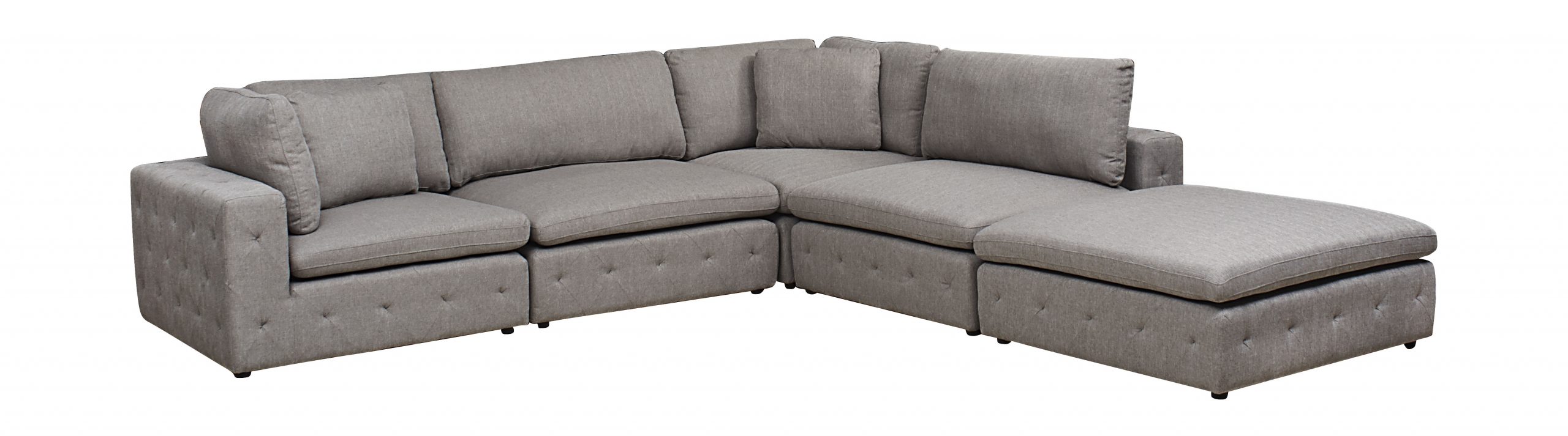 Create the ultimate oasis of comfort by designing the configuration that best suits your space. Modular or Sectionals provide all-around comfort and peace of mind that other couches can’t. Because they can adapt to most spaces and styles, and look like new forever, Sectionals are a smart investment. This piece includes two corner chairs, one ottoman and two armless units. Available in a range of imported fabric selections.