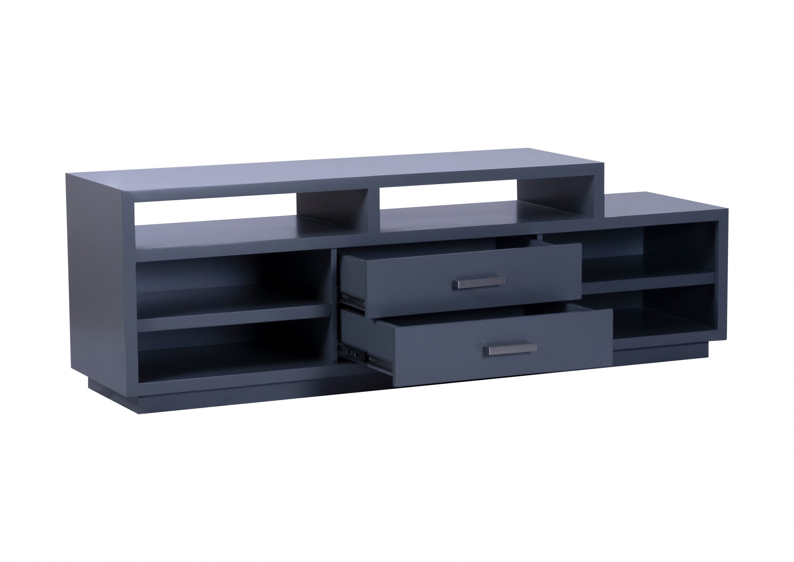 Update the look of your living room with the VENUS Entertainment Console. The VENUS is a clean lined, modern design with a crisp aesthetic that is sure to complement your existing decor while accommodating your needs. This console features a sleek, low-profile design complete with two spacious open shelves and two generous lower drawers that provide ample storage space for everything from components and gaming consoles to accessories and controllers. Two drawers are accented with understated hardware pulls for easy opening. Available in a range of colours, Black, White and Grey amongst the most popular.